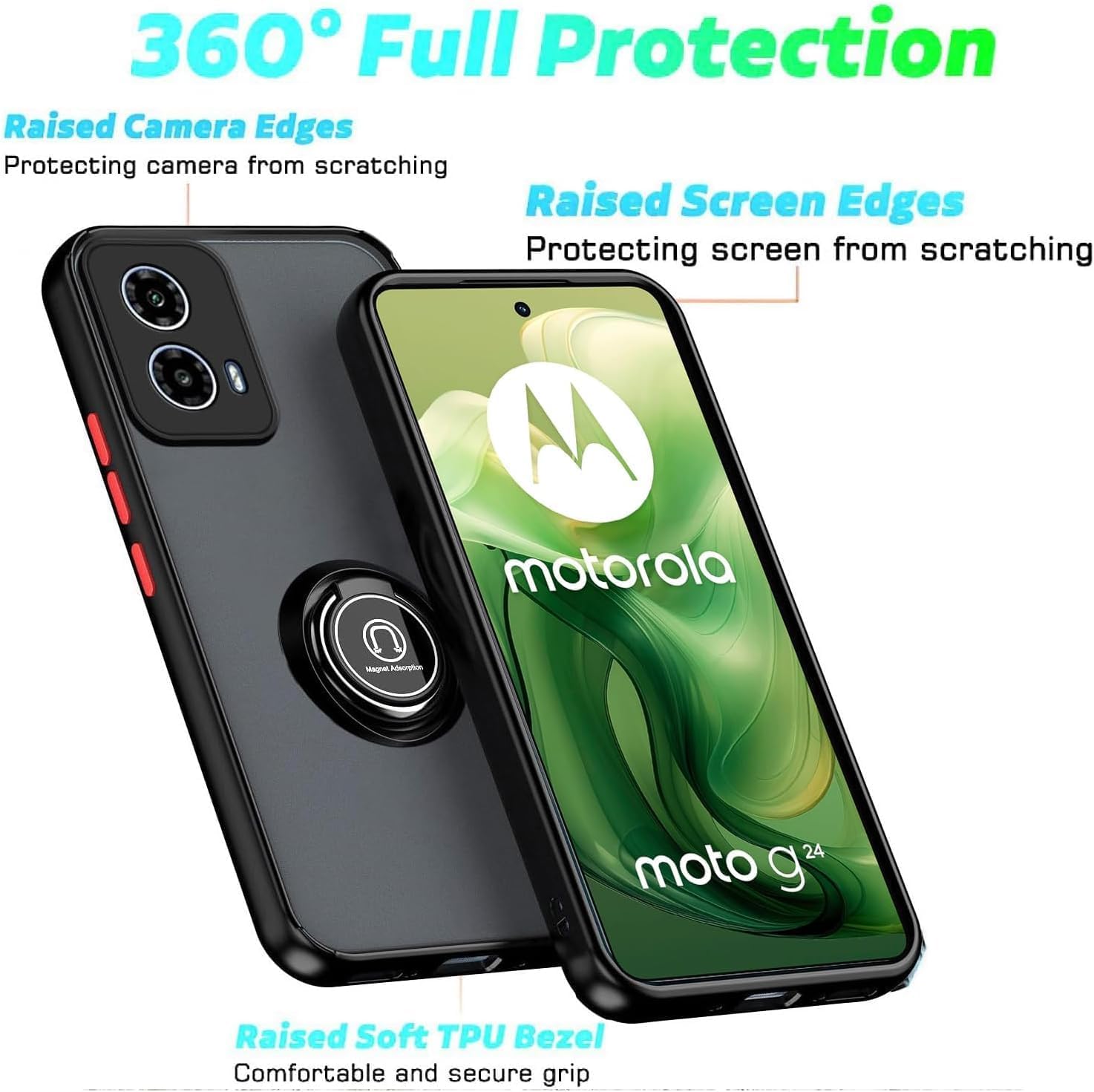 Case For Motorola G24 Shockproof Case, Magnetic Ring Armour Phone Cover with [Kickstand], Frosted Matte Case, Lightweight With Military Grade Shock Absorption Case For Motorola Moto G24