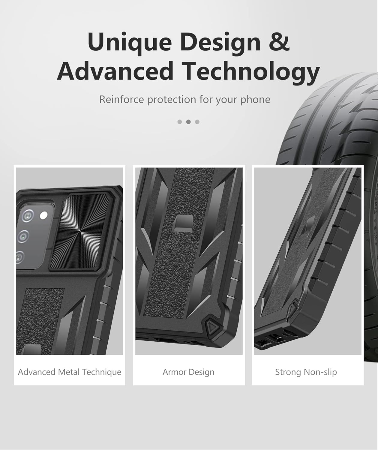 Secure Grip: Tire texture design and enhanced non-slip stripes on both sides of the case ensure better grip and comfortable hold.Effectively increase friction.No worry about your phone slipping off while you’re running or doing other outdoor activities