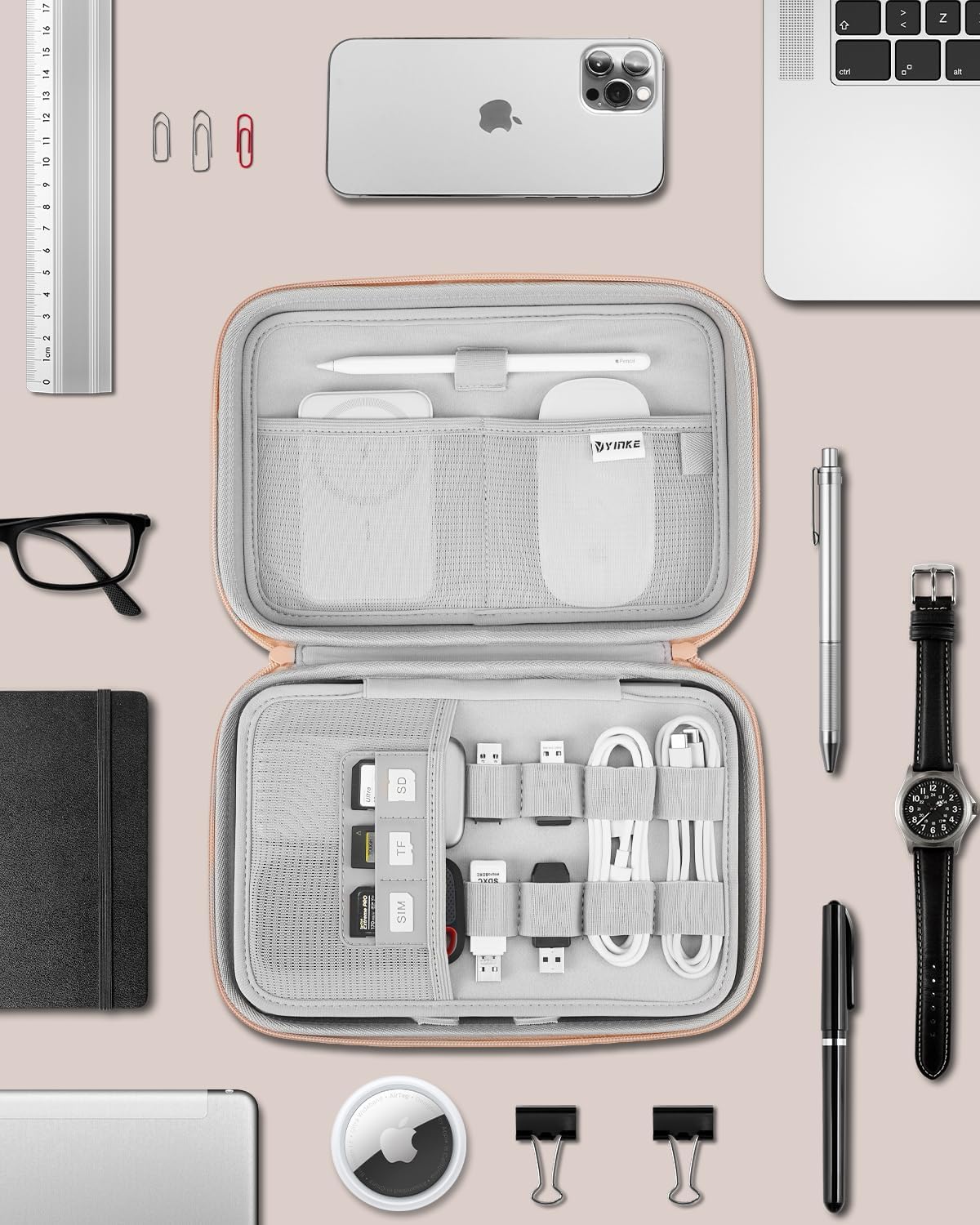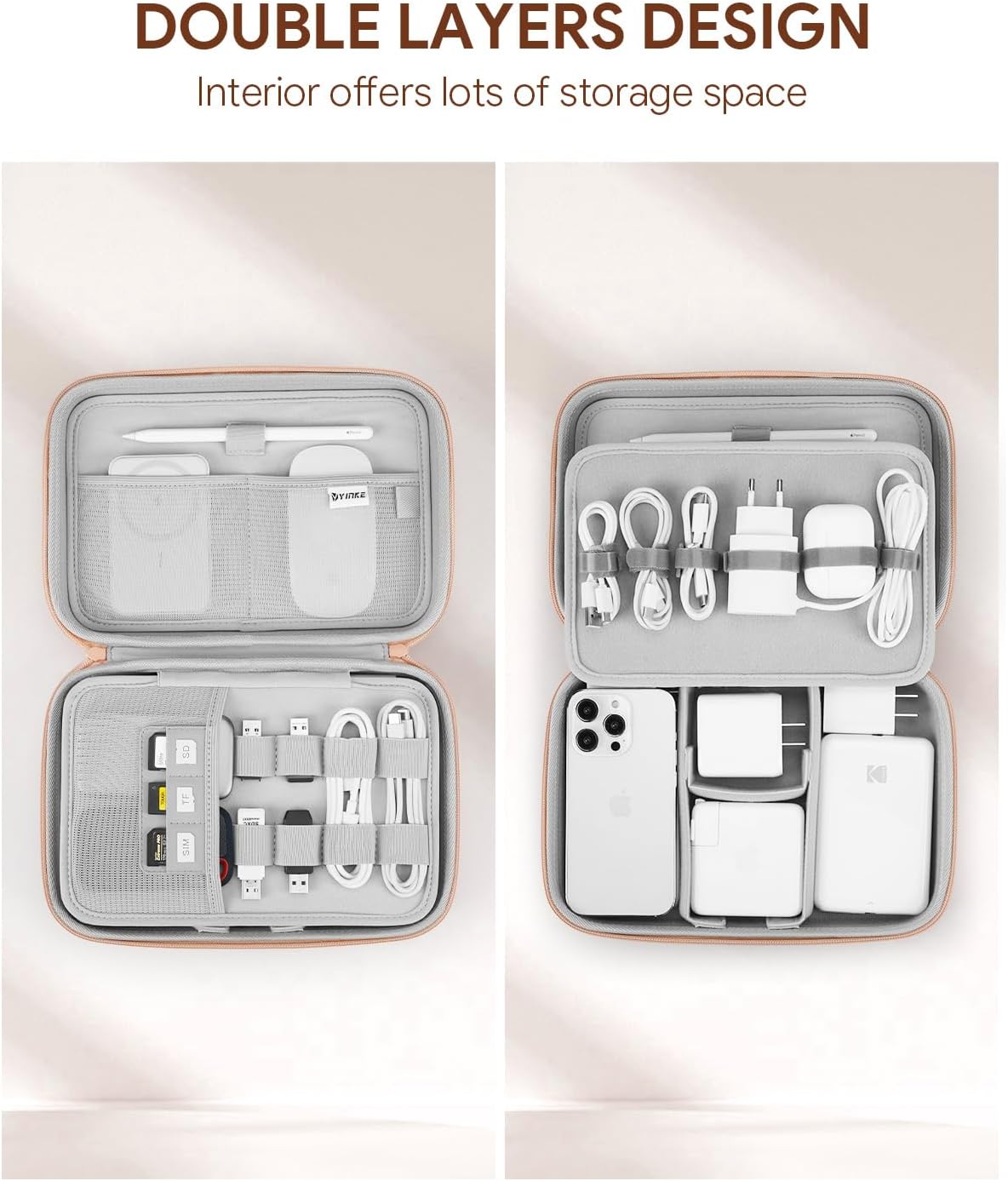 – The DIY design inside the case effectively combines user needs to improve space utilization and better storage of various electronic accessories